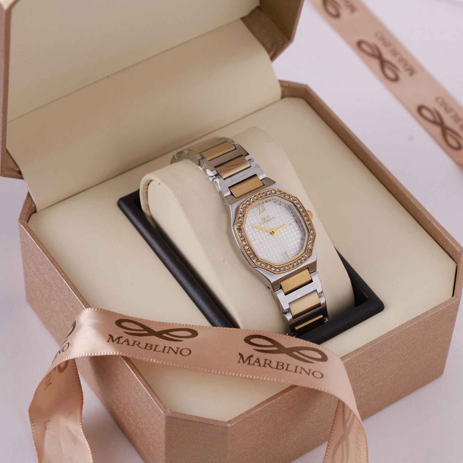 ساعة ماربلينو نسائية ستيل تصميم ثماني مميز مرصعة بدقة الالماس (مكس)