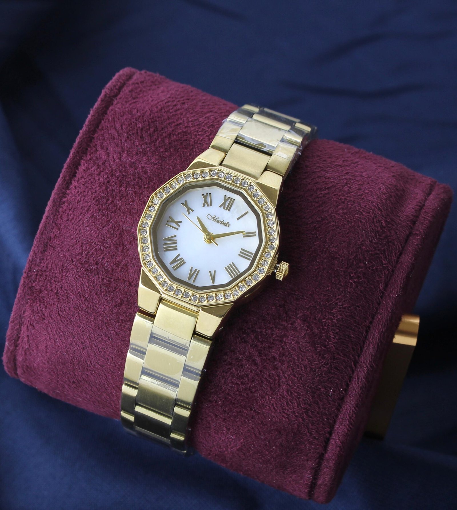 ساعة ماربلينو نسائية ستيل تصميم فاخر مرصعة بدقة الالماس (ذهبي)