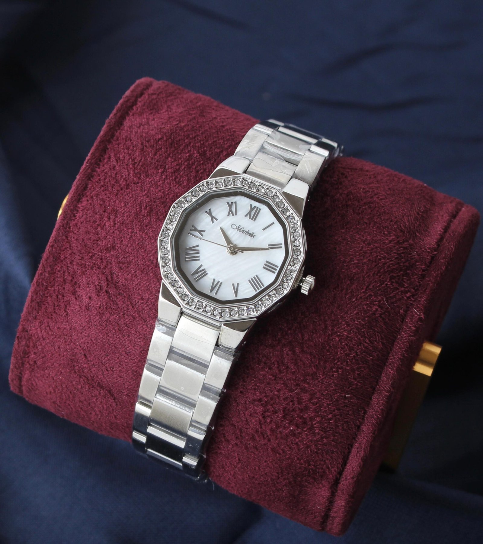ساعة ماربلينو نسائية ستيل تصميم فاخر مرصعة بدقة الالماس (فضي)