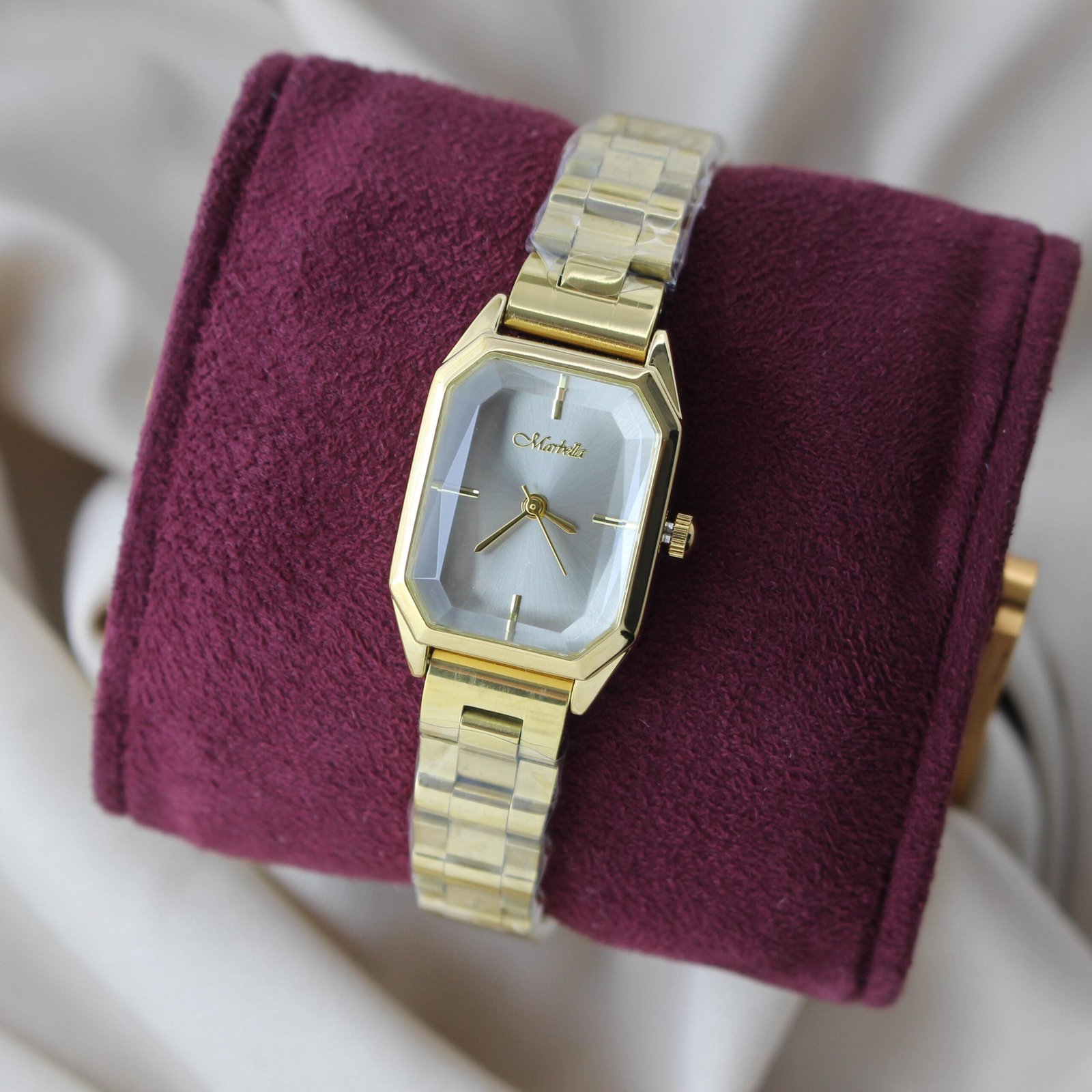 ساعة ماربلينو نسائية ستيل تصميم مستطيل جميل (ذهبي بخلفية تيتانيوم)