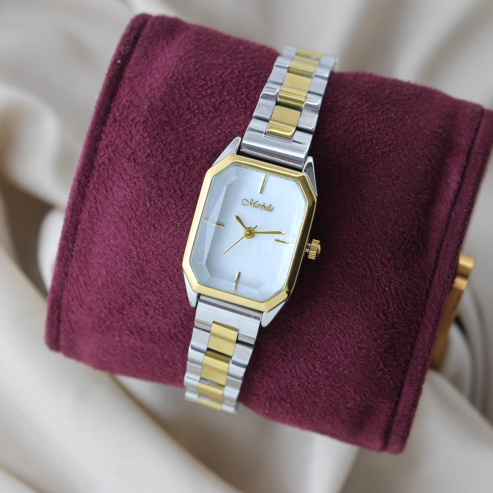 ساعة ماربلينو نسائية ستيل تصميم مستطيل جميل (مكس)